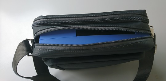 PTR3をバッグに入れてファスナーを閉めた写真